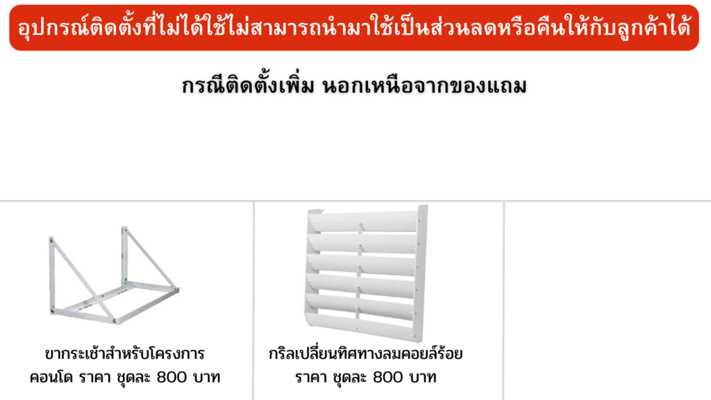 อุปกรณ์ติดตั้งที่ไม่ได้ใช้ไม่สามารถนำมาใช้เป็นส่วนลดหรือคืนให้กับลูกค้าได้